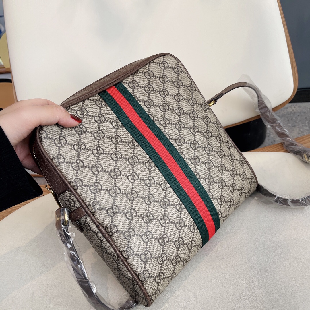 コンパクトなフォルムにジップ クロージャーとフロントポケットを付けたショルダーバッグ。グッチの代表的なモチーフ、ダブルGとウェブ ストライプをクラシカルに組み合わせた〔オフィディア〕ラインには、新たなフォルムやシルエットを取り入れた新作が誕生しています。GGスプリーム キャンバスで仕立て、ダブルGハードウェアをあしらいました。