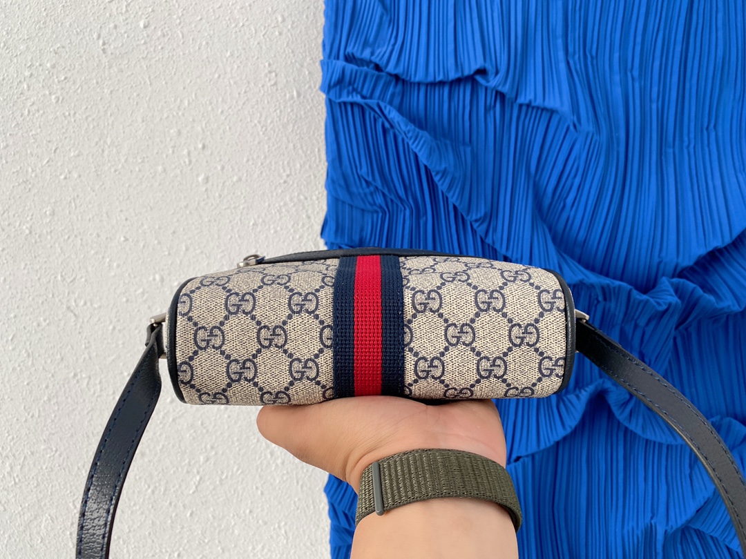 歴史的なルーツを映し出すGGスプリーム キャンバスが、ブルーとベージュというタイムレスなカラーミックスでGucci Love Parade コレクションに登場。環境に配慮したこのキャンバス素材は、何十年もの時を経てもなお各コレクションを彩り、いまやグッチを代表する素材となっています。このクラシカルなカラーパレットで、ミニサイズの〔オフィディア〕ショルダーバッグにアクセントを効かせています。