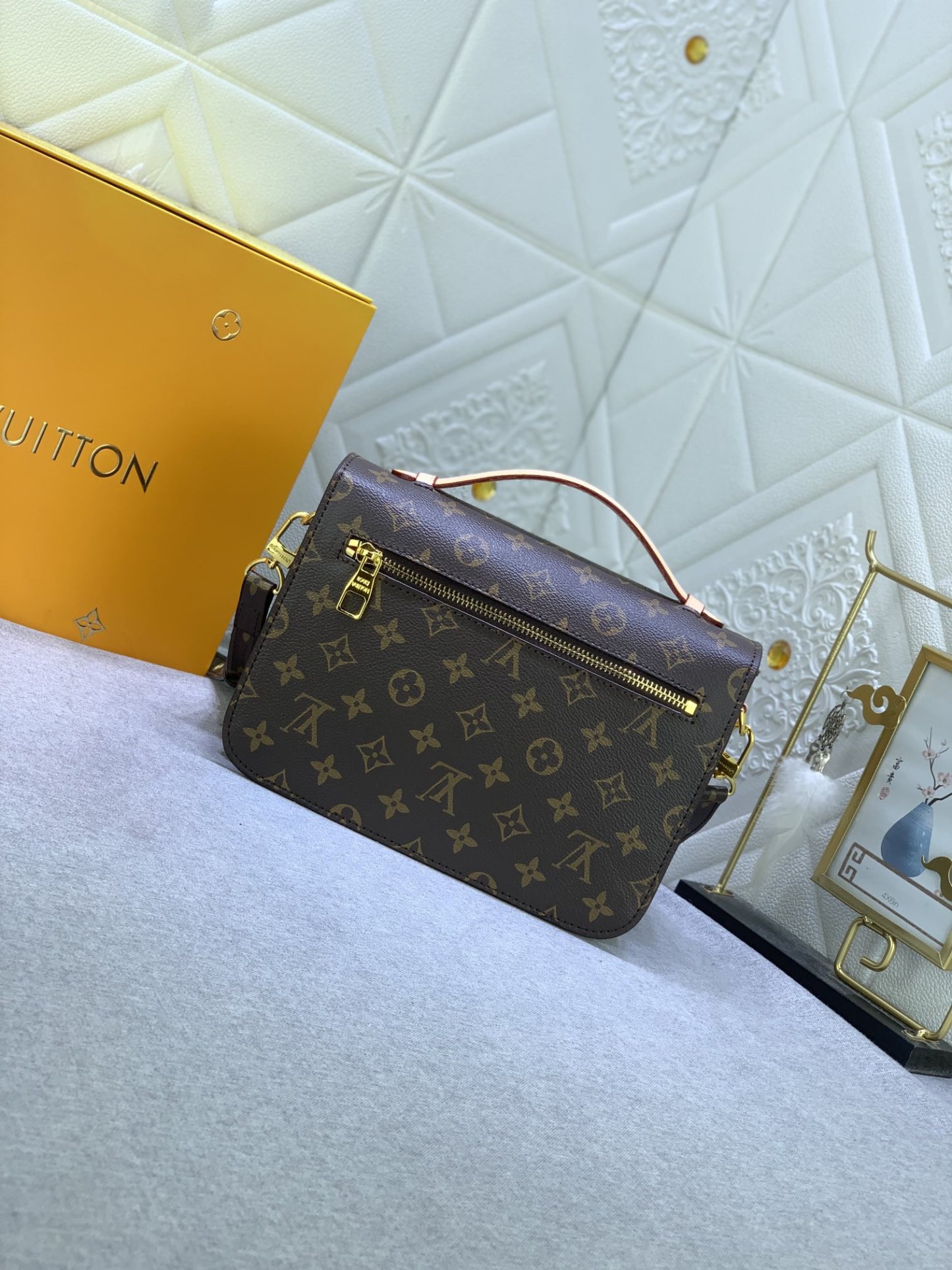 LOUISVUITTON モノグラムキャンバスボディにグレイン牛革のレオパードパッチ付き M47203 M40780